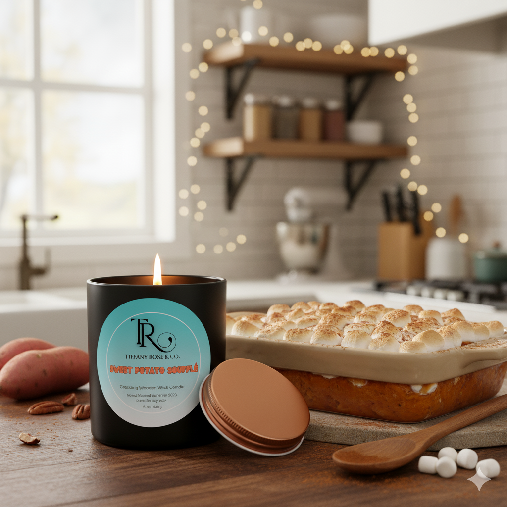 Cozy and decadent, Sweet Potato Soufflé Candle captures the warmth of holiday gatherings and homemade desserts. The fragrance blends the richness of sweet potatoes, maple, cinnamon, clove, and nutmeg with creamy butter, sugar, vanilla, and tonka bean. Sweet, spiced, and comforting, it’s the perfect scent to make your space feel like home.